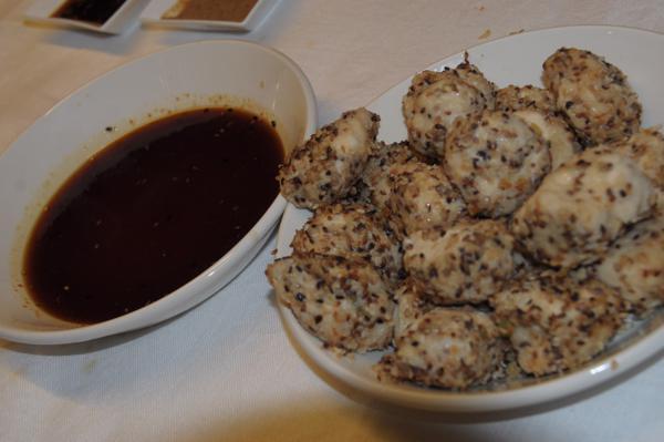 Toridango Gestoomde kipballetjes met sesamzaad in honingsaus
