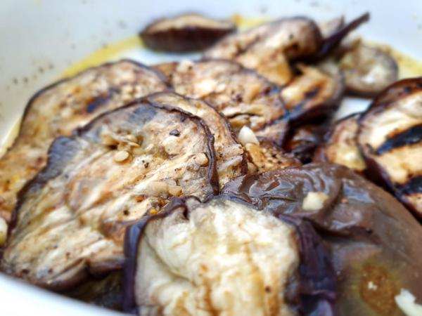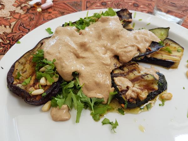 Gegrilde aubergines met pijnboompitten en tahin KETO