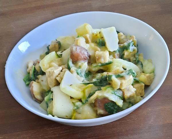 Stamppot paksoi met champignons en tempé